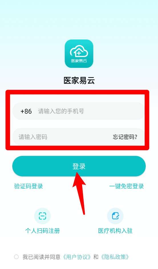1、登录页面输入手机号码与密码点击登录,可选择验证码登录或一键免密方式。