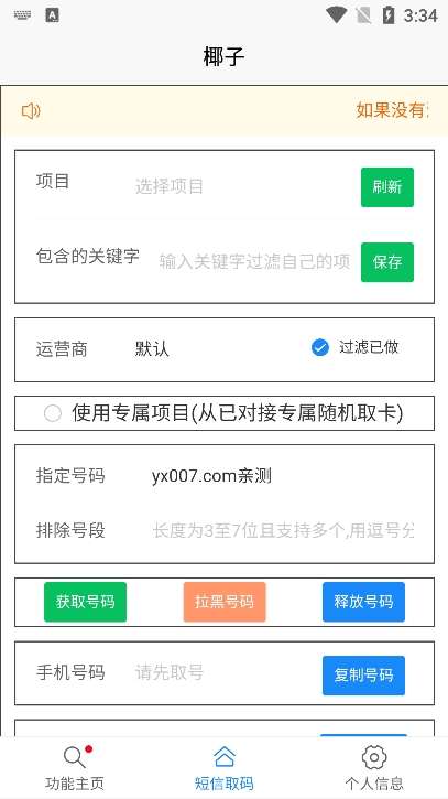 二次接码操作:若选择“二次接码”项目,需明确其含义为“该号码非首次接收此项目验证码”,而非自动接收两次。如需重复接收,需在App内重新指定取号。