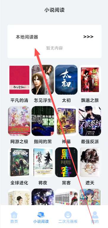 2.之后在小说阅读页面中,用户还可以对自己感兴趣的小说进行阅读,还可以查看本地小说内容。