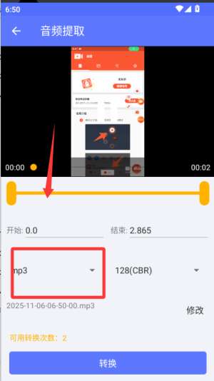 2、视频的声音可以转换为mp3、AAC、wav的格式进行保存和播放,可以永久保存。