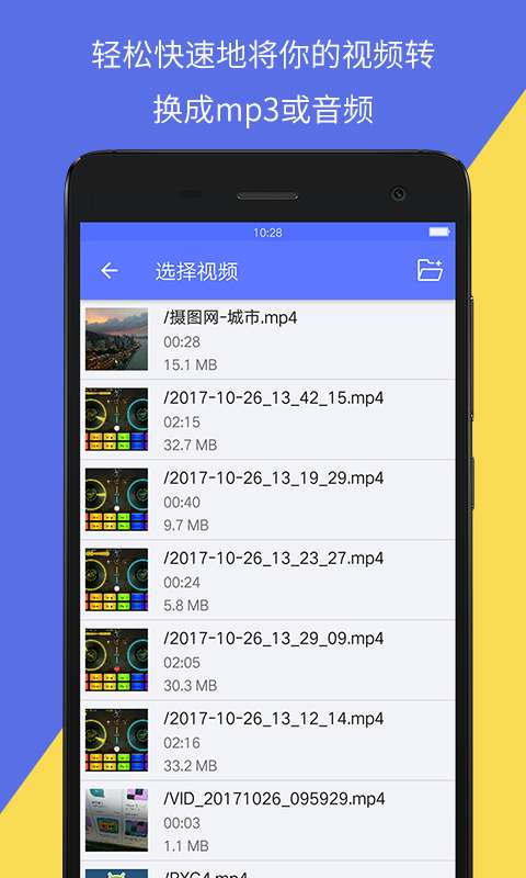 1、可以从手机本地中挑选要转换的视频,支持多种格式视频的音频转换。