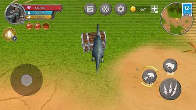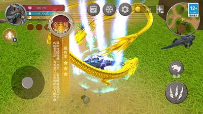 4、通过虚拟摇杆操控初始形态的恐龙进行移动,在开放世界中寻找并击败其他生物以获取进化点数。