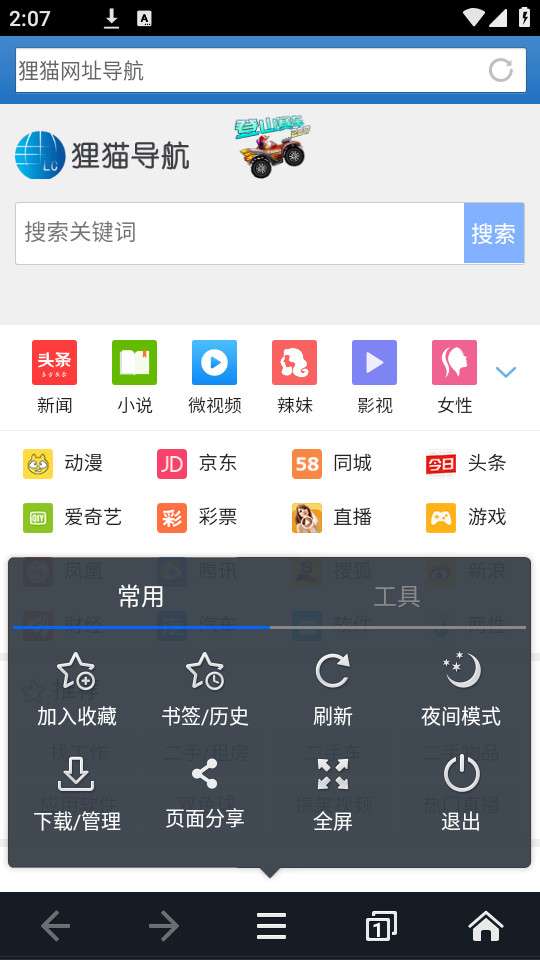 便捷的搜索工具,具有体积小、搜索速度快且内容全面的特点受到了众多用户的欢迎,搜小说、新闻以及动漫等都是可以的,可以输入关键词或者网址进行搜索,将喜欢的网址进行收藏、分享、加入书签,无广告弹窗,搜索更方便。软件提供的内容全面,拥有着便捷的书签管理功能,使您再也不用担心找不到自已常用的网站了。