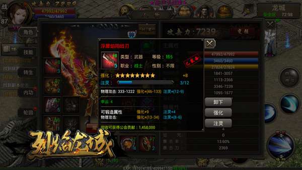 1、争夺BOSS,激战boss里面会显示各种可击杀的boss,分为野外boss和个人boss,个人boss不用急,野外boss可以找几个朋友组队打,抢占先机,积累一定的基础装备,多余的装备还可以在龙城装备回收员处回收,也能得到不少的经验和金币。