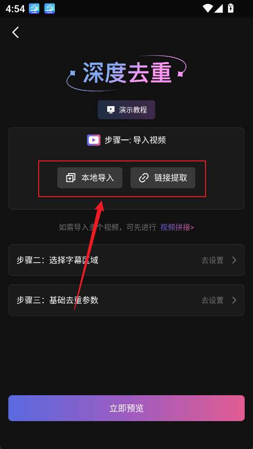 2、这里提供了两种导入方式,本地导入以及链接提取导入。