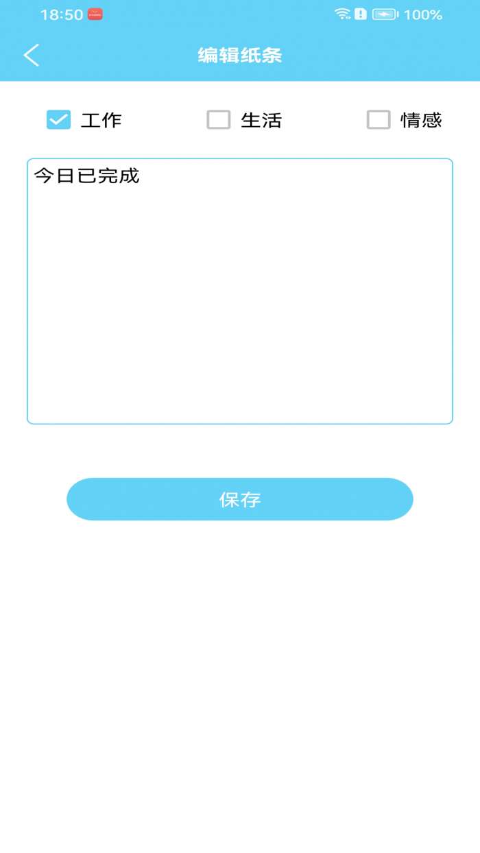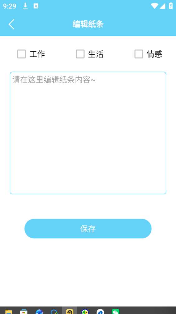 3、打开之后选择您想要编辑的纸条类型,然后写下您想写的事情之后点击保存。