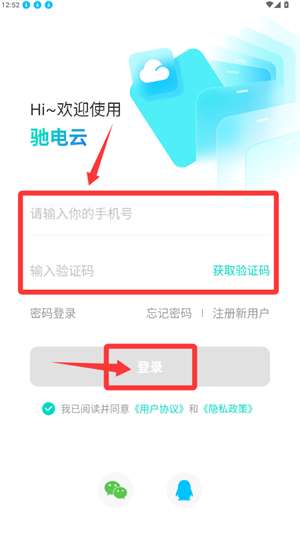 1、在登录页面填写您的电话号码和验证码,点击登录进入应用程序。