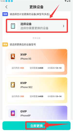 3、选择新的和旧的设备型号,单击“立即更换”以完成该过程。