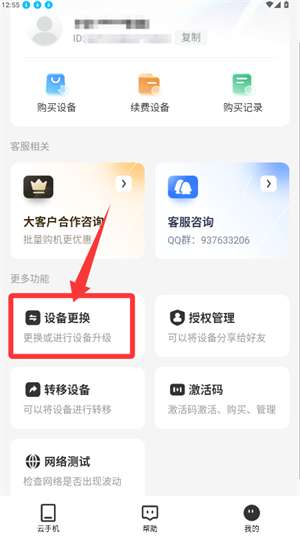 2、点击个人页面上的设备更换选项,进入更换操作界面。