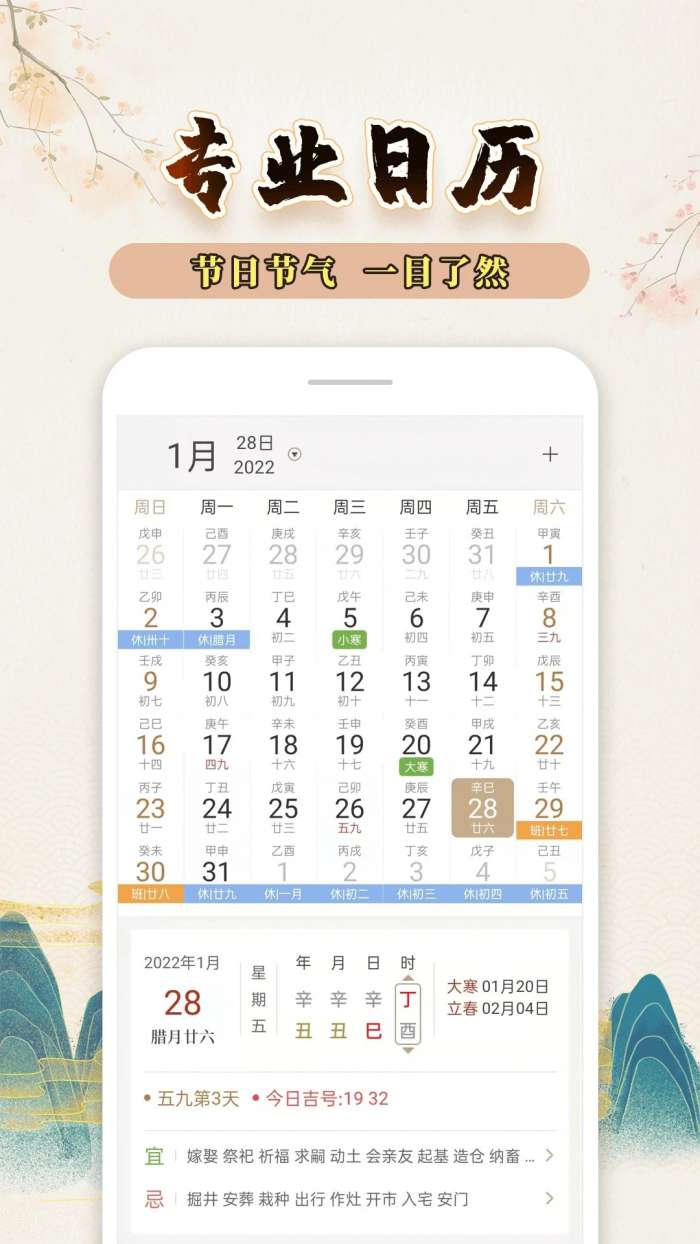 2、生活助手:提供实用的日期查询和年历吉凶功能,帮助用户合理安排日常生活。