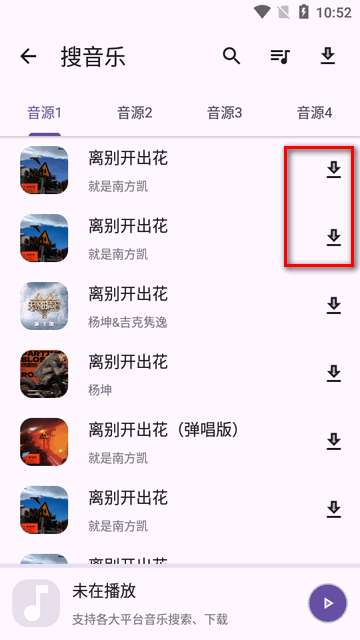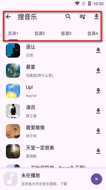 3、进入搜音乐界面,选择音源后点搜索按钮。