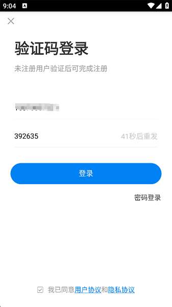2、输入手机号和验证码,点击登录再创建密码以完成注册登录。
