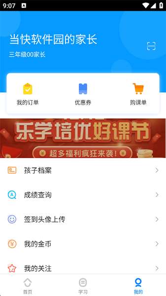 6、最后您可以在我的页面管理孩子/学生的个人档案、成绩查询,还有订单购课单等。
