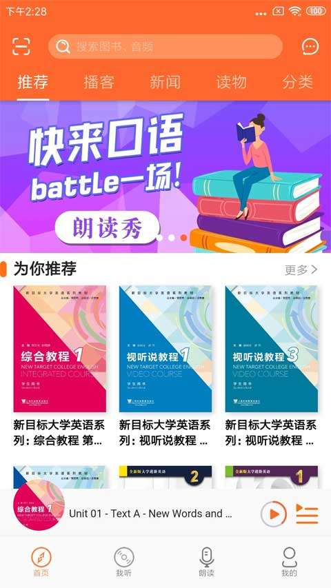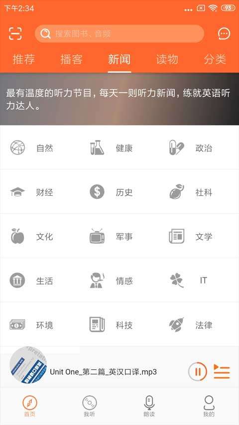 1、打开应用就可以在线进行选择优质的书籍进行音频互动畅听。