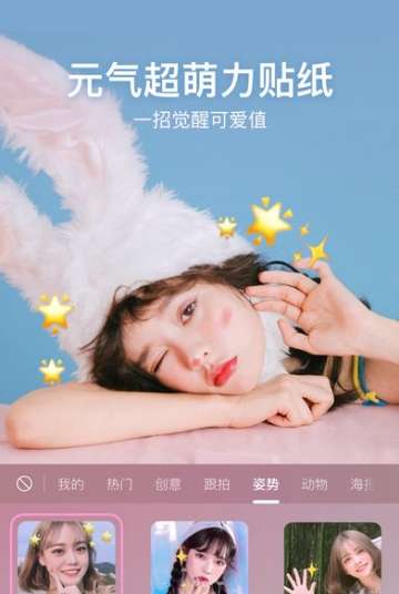 贴纸滤镜,包含新的发型、激萌动物造型、服装等一系列有趣的动态贴纸。