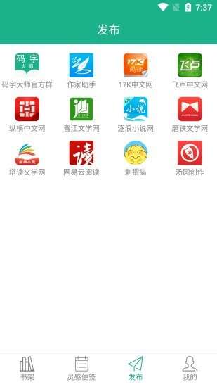 3.在“发布小说网站”部分,您可以将章节内容复制到相应的小说网站上进行发布,新平台包括:17K,飞K、纵横、晋江、逐浪、磨铁、塔读和其他网站。