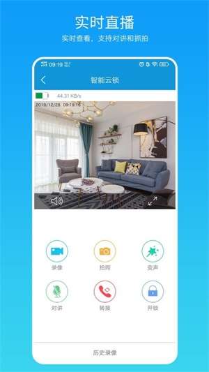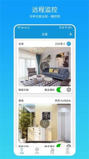 清清新时尚简约大方的界面,还能跟换不同的背景,一切根据你的喜好来决定,让你可以有个良好的体验感,软件的操作也非常简单,只需要连接网线就能使用,随时都能查看家里的情况,还有一键报警功能,保障你的安全。