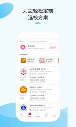 2.为你定制方案,智能选校筛选系统,还能轻松查看各大高校信息内容,各种手续流程为你轻松导航。