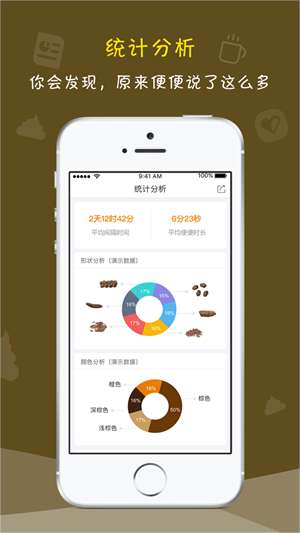 1.可以记录你的排便轨迹,记录用时;也可以记录便便的形状颜色;