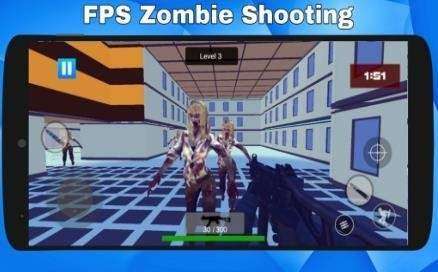 2、僵尸射击游戏,根据你的运动移动画面,画面粒子效果强;