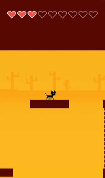 街机跳跃冒险游戏,游戏中你需要帮助一只黑色的猫寻找他的伴侣,