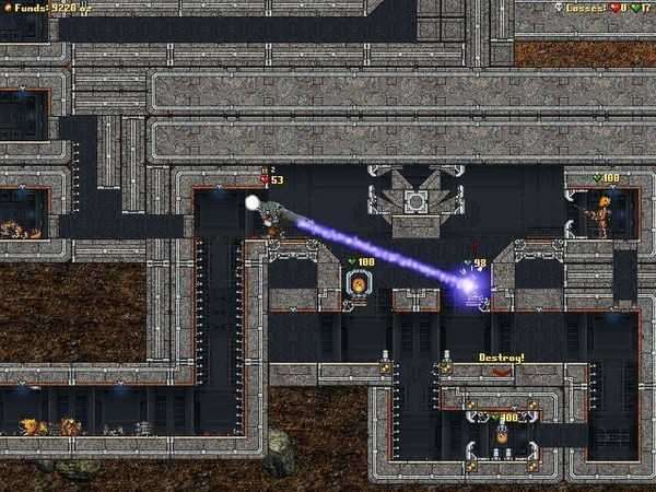 完全可破坏的环境-你需要挖掘的黄金洒在每个场景的地形上,用特殊的挖掘工具把你的路炸成泥土和碎片。从你的斗争中,所有的身体和船只都会掉到地上,永久地添加到战场上。使用更强大(和昂贵)的挖掘机,你甚至可以从下面钻入敌人的掩体!