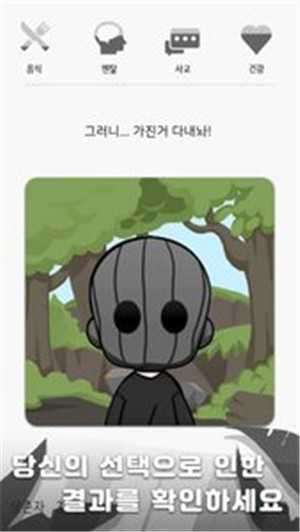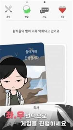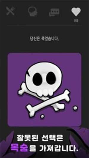 ,故事进行的时候不同的选择会造成上方的属性栏的改变,当某一项过低或者为0之后,你就会死亡
