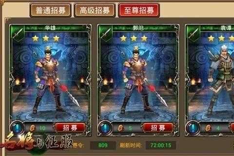 名将与征服是一款以三国为主要题材的策略对战游戏,玩家注册就可以获得免费的VIP,上线就送元宝、武将等等,可以让你更好的玩三国游戏。在名将与征服中玩家可以自由招募各种三国武将,然后自由搭配阵容,更好的参与战斗,抢夺资源!感兴趣的小伙伴快来下载名将与征服试试吧!