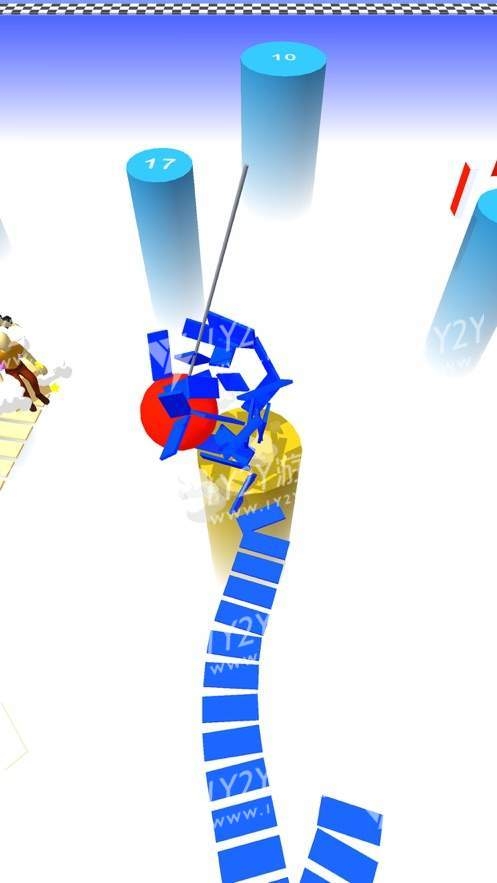 3.沿途还会出现大摆锤等障碍物,小心的躲避开危险,不断建造桥梁前进闯关吧。