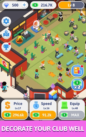 1、小清新的游戏画风,趣味的经营玩法,打出精彩的广告,让你的武馆拥有知名度;