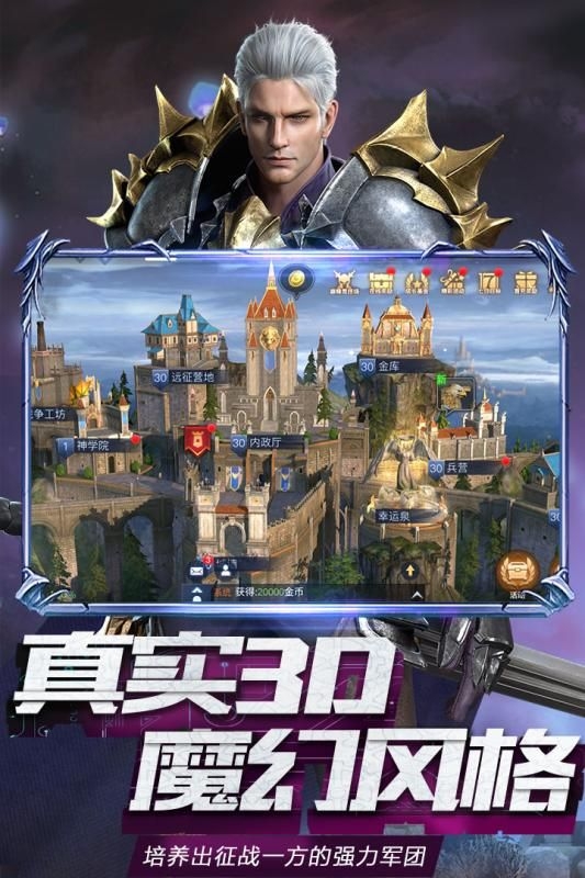 1、3D的游戏风景加上这里的魔幻情景剧,大家就在这里培养一些战士来出城扩大疆土吧。