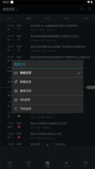 我们准备了五种不同类型的日历,分别是财经日历、财报日历、股息日历、新股日历以及节日日历。