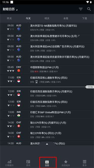 拥有各国财经数据,全面展现全球重要经济指标以及财经事件,并可查看历史数据及自定义事件提醒