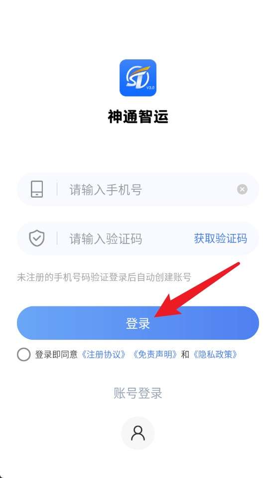 1、打开神通智运App,输入手机号与验证码后点击“登录”按钮即可快速进入系统。