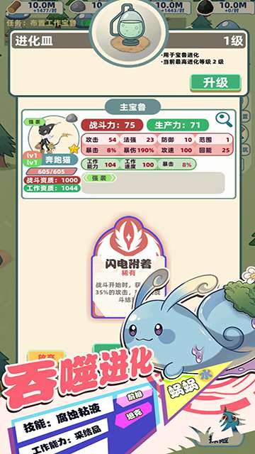 2、宠物可通过吞噬成长解锁核心进化路径,数不胜数的培养方式,保证阵容永远不单调。