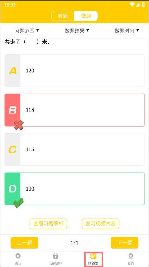 4、接着,软件会在用户选择好答案后及时反映这道题的正确解答,正确的话,用户就会进入下一题,错误的话用户就会看到自己的错误,并且能够看到正确答案;