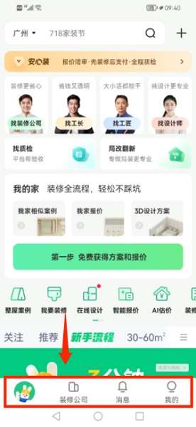 3、通过底部导航栏选择装修公司等功能使用服务。
