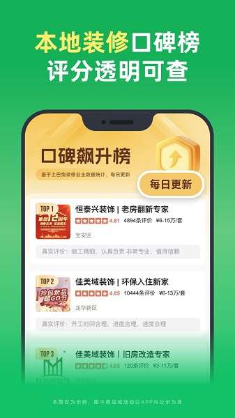 3、用户评价真实可查:每家装修公司均展示历史业主评分与详细评论,选择更有依据。