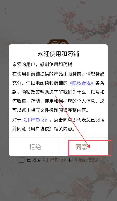 1、首次打开软件后,会看到隐私合规和用户协议的勾选界面,先把这两个协议前面的勾选框打上勾,再点击同意按钮完成协议确认。