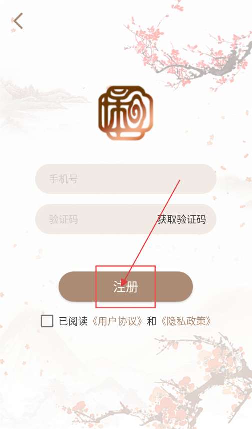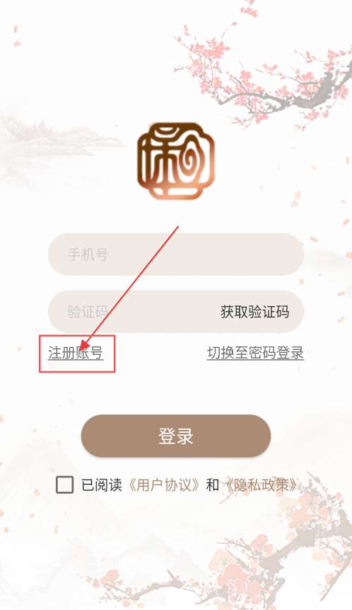2、完成协议确认后进入登录页面,在页面上找到注册账号的按钮,点击这个按钮就能开启和药铺的账号注册流程。
