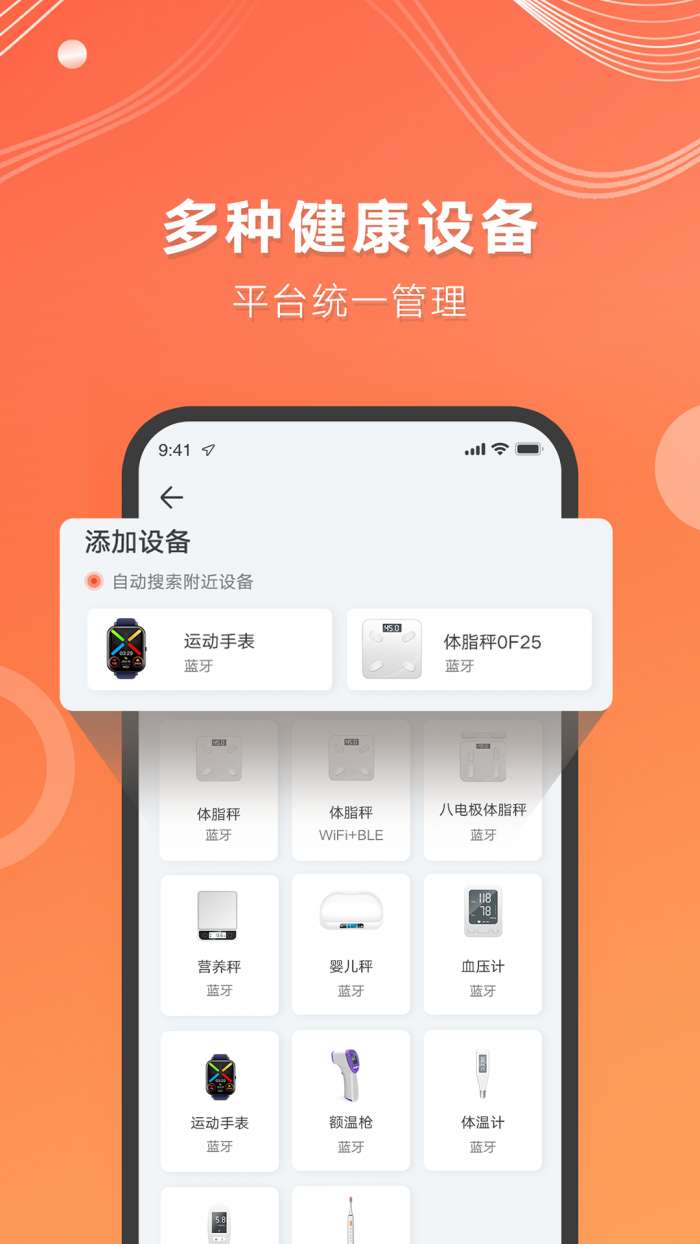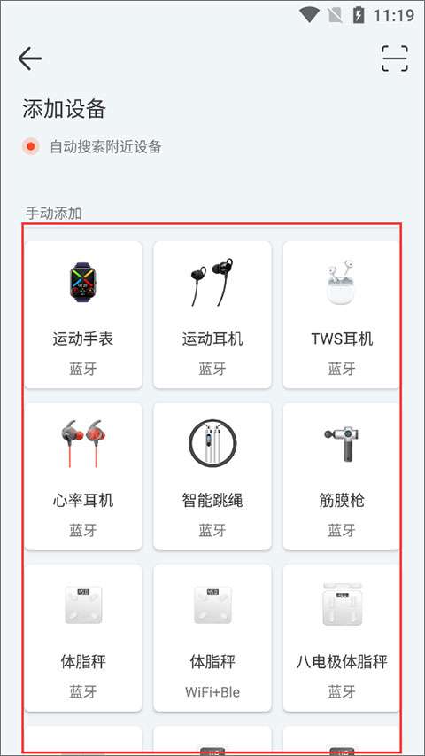 3、选择想要连接添加的智能设备,如运动手表、运动耳机、智能跳绳、体脂秤等等;
