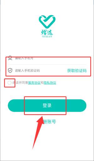 1、在熠选APP中,点击“同意并接受”服务协议,进入程序界面。
