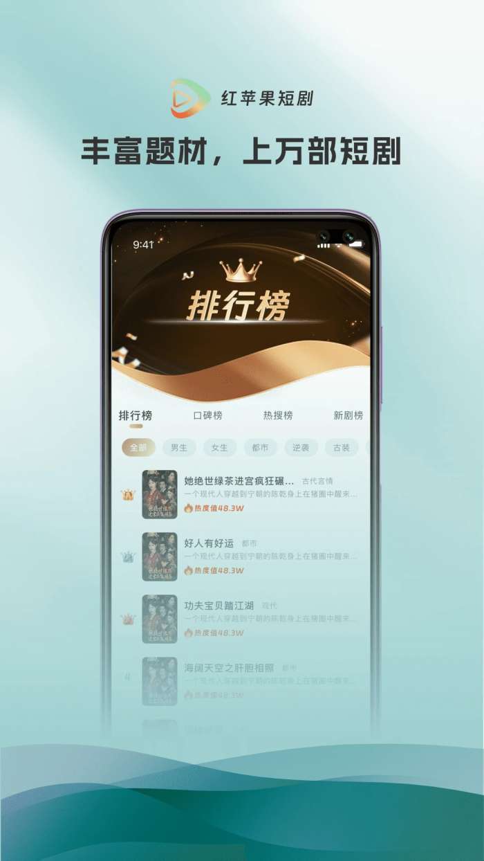 红苹果短剧是一款全新的短剧视频观影软件,拥有丰富多样的短剧类型和频道,可以让用户自由根据地区,年代等信息进行筛选查看,随时获取各种热门且受欢迎的短剧,轻松免费播放感兴趣的短剧内容和视频,能完全满足用户的所有追剧需求,还可以及时记录用户的追剧历史,自由在线播放最新的短剧,轻松享受流畅的追剧观影之旅,还提供个性化的短剧推荐,随时随地自由浏览用户的追剧观影历史,轻松推送各种热门短剧。