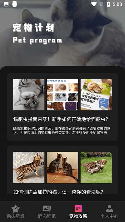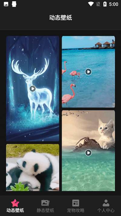 1、猫吖壁纸 手机高清壁纸软件中有静态壁纸和动态壁纸,动态壁纸有声音,很特别。