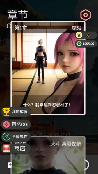 《糟糕我被女忍包围了》是一款结合多种玩法元素的爱情故事线手游。在游戏中,玩家将扮演一个陷入忍者世界的普通人。你需要根据女忍者的性格与她们互动,你做出的每一个选择都会影响故事线的走向。在游戏中,玩家将与各种女忍者接触,发展出一个独特的爱情故事。游戏有不同的章节和分支可供玩家解锁,整体玩法非常简单。每个女忍者的结局都是不一样的。