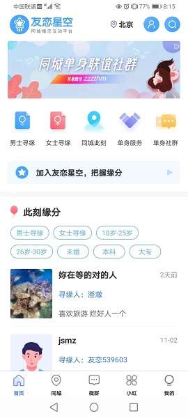 友恋星空是一款专注于婚恋交友的安卓软件,在平台上,可以寻找意中人,与意中人互动;可以写寻缘信息,主动拥抱缘分;更多婚恋增值服务。友恋星空,同城婚恋互动平台。软件界面简洁明了,操作便捷,用户可以轻松上手。所有用户均需经过实名认证才能正常使用,确保交友环境的真实性和安全性。软件会及时通知用户查看新收到的聊天消息,方便用户及时回复和互动。