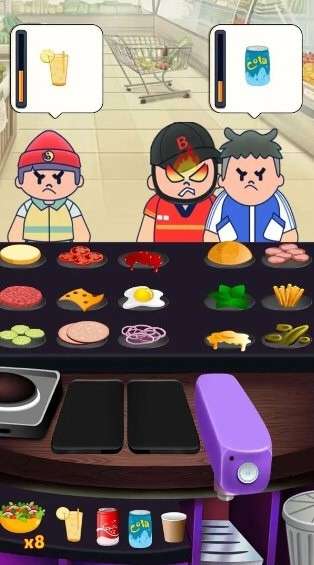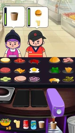 2、游戏中还有饮料要做,这比做汉堡包简单得多。升级你的商店管理工具,你需要自己制作每个汉堡进行搭配。