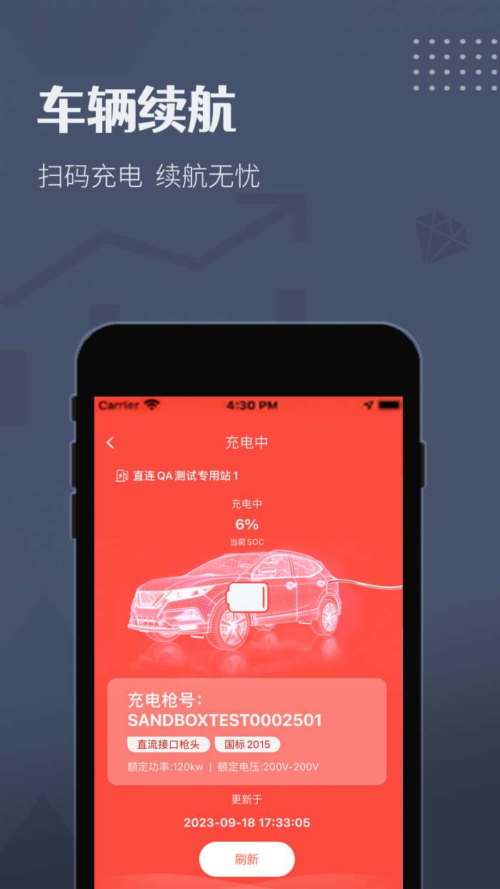 4、提供了扫码充电的功能,扫码里面的二维码就可以对车辆进行充电。
