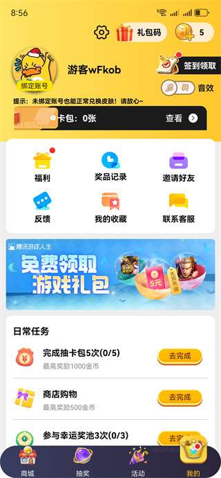 2、提供线上抽奖活动,可以获取不同游戏的福利,左右滑动就可以切换卡盒。