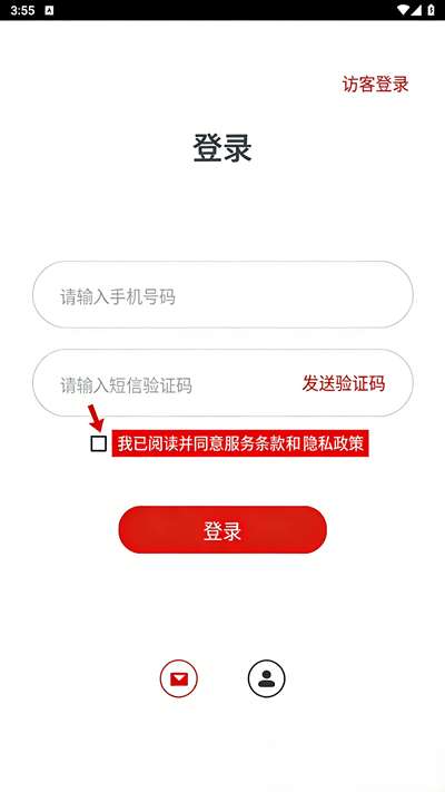 3、阅读并勾选 “我已阅读并同意服务条款和隐私政策” 前的复选框。